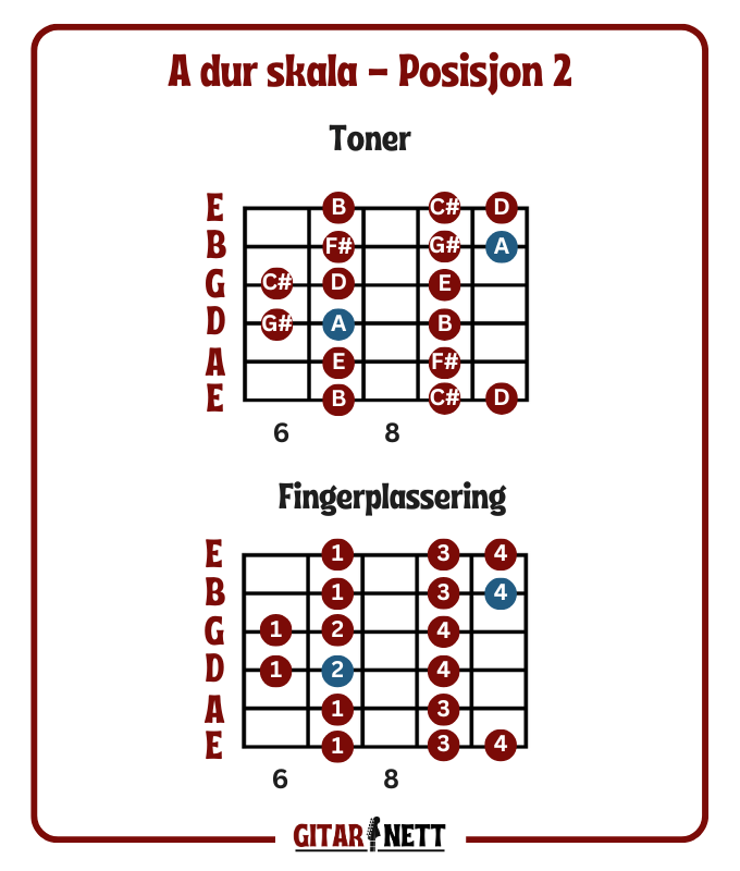 Da er det bare å sette igang med å øve inn A dur skalaen på gitar.