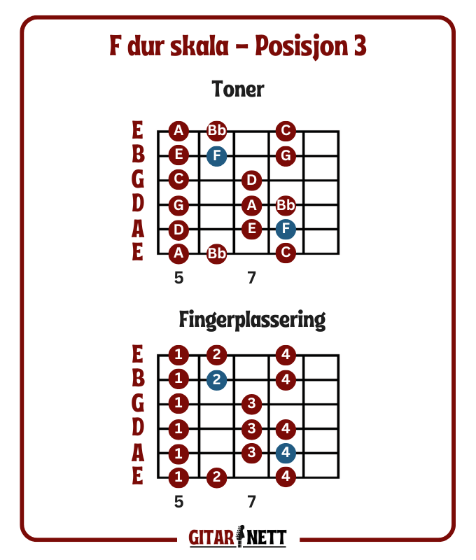 Som en viktig del av øvingsrutinen på gitar er det supernyttig å inkludere skalaer. Durskalaen er en av de mest brukte skalaene i vestlig musikk og her gjør vi et dypdykk i F dur skalaen.