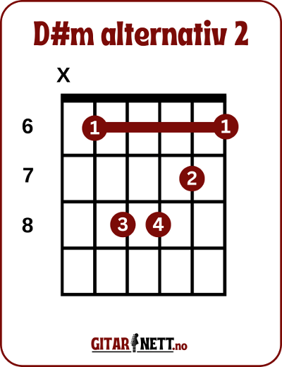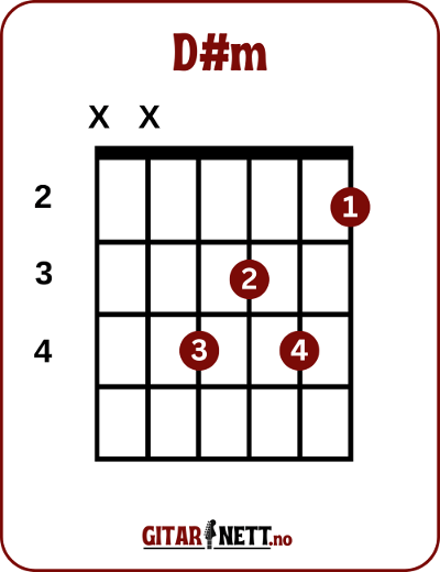 Her kan du lære gitargrepet for D#m på gitar. Det er vanlig å spille denne akkorden på noen forskjellige måter, og vi tar for oss disse her.
